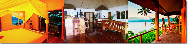 Each room has private en-suite bathrooms, A/C, king or queen size beds, hardwood floors and are tastefully decorated in subtle Fijian styles. French doors lead out to your own private sun deck where you can enjoy tropical peace and quiet in secluded privacy, relax on the loungers or contemplate life from the hammock.